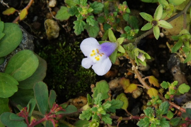小さいお花で、トキワハゼというのが、街中の路地隅などを